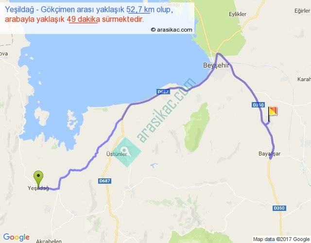 Yeşildağ - Gökçimen arası yaklaşık olarak 90 km/h ile yukarıda belirtilen sürede olup, iki yerin kuş uçuşu uzaklığı (mesafesi) 30'dir. Yolculuk otobüsle 1 saat 3 dakika sürmektedir.