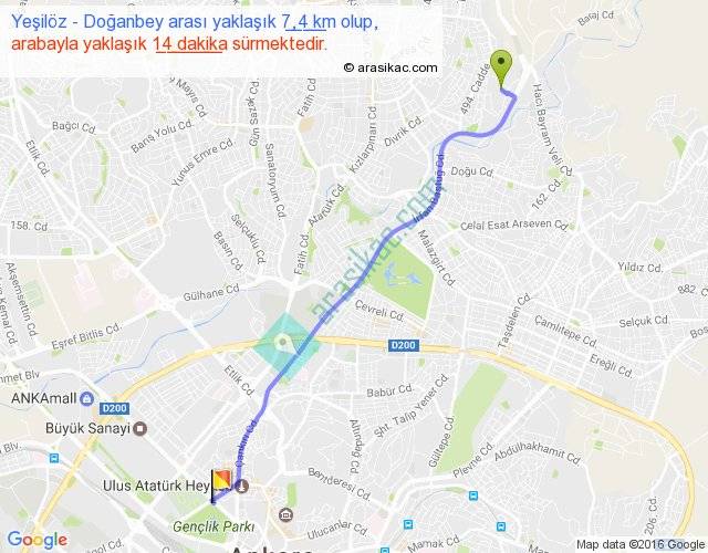 Yeşilöz - Doğanbey arası yaklaşık olarak 90 km/h ile yukarıda belirtilen sürede olup, iki yerin kuş uçuşu uzaklığı (mesafesi) 7'dir. Yolculuk otobüsle 18 dakika sürmektedir.
