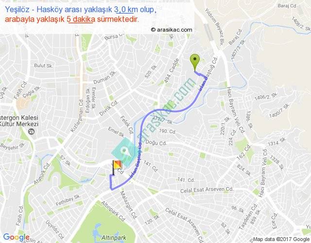 Yeşilöz - Hasköy arası yaklaşık olarak 90 km/h ile yukarıda belirtilen sürede olup, iki yerin kuş uçuşu uzaklığı (mesafesi) 2'dir. Yolculuk otobüsle 6 dakika sürmektedir.