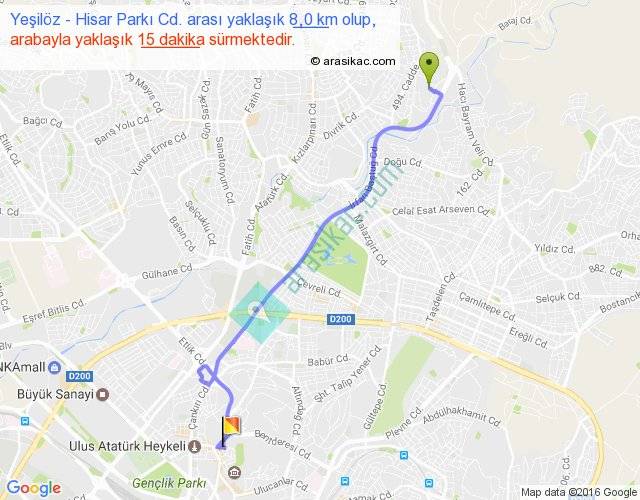 Yeşilöz - Hisar Parkı Cd. arası detaylı bilgi