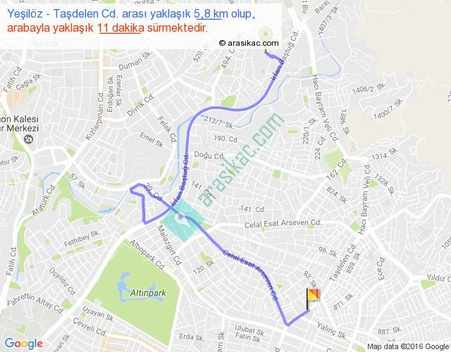 Yeşilöz - Taşdelen Cd. arası detaylı bilgi