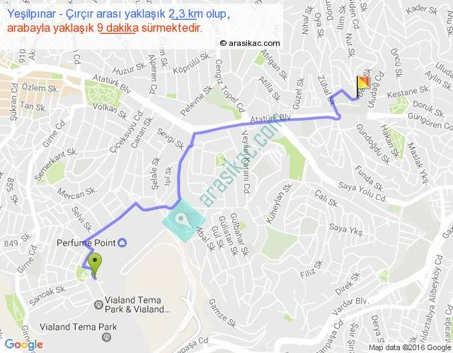 Yeşilpınar - Çırçır arası yaklaşık olarak 90 km/h ile yukarıda belirtilen sürede olup, iki yerin kuş uçuşu uzaklığı (mesafesi) 2'dir. Yolculuk otobüsle 11 dakika sürmektedir.