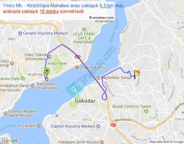 Yıldız Mh. - Kirazlıtepe Mahallesi arası detaylı bilgi