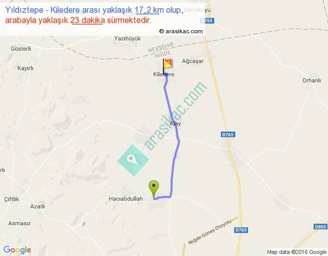 Yıldıztepe - Kiledere arası yaklaşık olarak 90 km/h ile yukarıda belirtilen sürede olup, iki yerin kuş uçuşu uzaklığı (mesafesi) 15'dir. Yolculuk otobüsle 29 dakika sürmektedir.