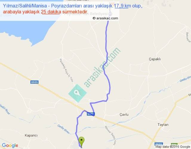 Yılmaz Salihli Manisa - Poyrazdamları arası yaklaşık olarak 90 km/h ile yukarıda belirtilen sürede olup, iki yerin kuş uçuşu uzaklığı (mesafesi) 14'dir. Yolculuk otobüsle 32 dakika sürmektedir.