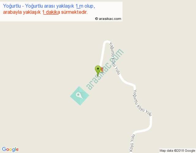 Yoğurtlu - Yoğurtlu arası yaklaşık olarak 90 km/h ile yukarıda belirtilen sürede olup, iki yerin kuş uçuşu uzaklığı (mesafesi) 0'dir. Yolculuk otobüsle 1 dakika sürmektedir.