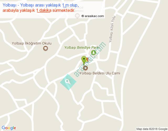 Yolbaşı - Yolbaşı arası yaklaşık olarak 90 km/h ile yukarıda belirtilen sürede olup, iki yerin kuş uçuşu uzaklığı (mesafesi) 0'dir. Yolculuk otobüsle 1 dakika sürmektedir.