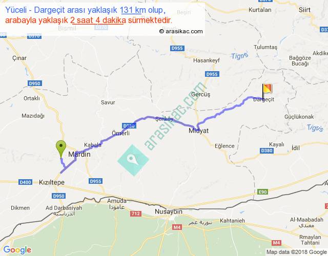 Yüceli - Dargeçit arası yaklaşık olarak 90 km/h ile yukarıda belirtilen sürede olup, iki yerin kuş uçuşu uzaklığı (mesafesi) 99'dir. Yolculuk otobüsle 2 saat 41 dakika sürmektedir.
