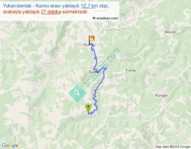 Eğer Yukarıdamlalı Kumru arası ne kadar yakar (benzin/mazot) diyorsanız, kilometrede 3 ₺ yakan bir aracınız var ise 36, km'de 4 ₺ yakan bir aracınız var ise 48, km'de 5 ₺ yakan bir aracınız var ise 60 ile bu yolculuğu tamamlayabilirsiniz.