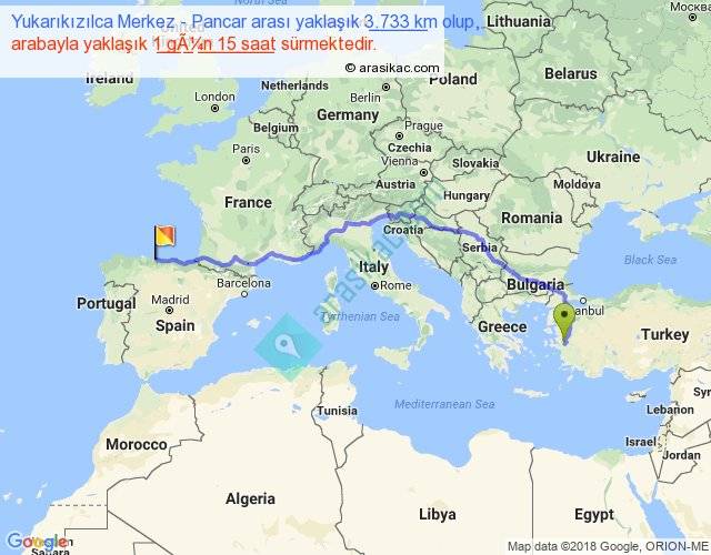 Yukarıkızılca Merkez - Pancar arası yaklaşık olarak 90 km/h ile yukarıda belirtilen sürede olup, iki yerin kuş uçuşu uzaklığı (mesafesi) 2734'dir. Eğer belirtilen yerler arasında uçak seferi var ise bu süre uçakla 4 saat 12 dakika'ya kadar düşebilir. Yolculuk otobüsle 2 gün 2 saat sürmektedir.