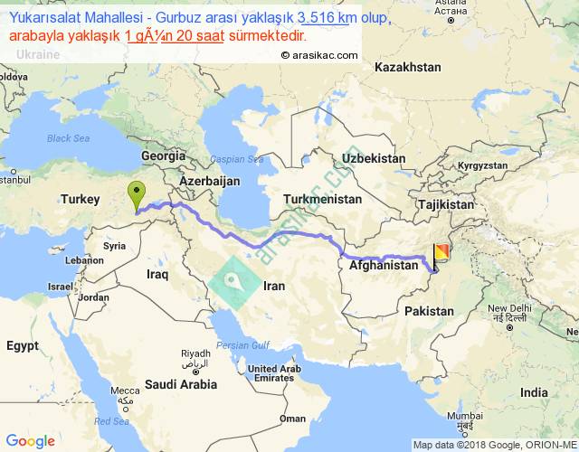 Yukarısalat Mahallesi - Gurbuz arası yaklaşık olarak 90 km/h ile yukarıda belirtilen sürede olup, iki yerin kuş uçuşu uzaklığı (mesafesi) 2653'dir. Eğer belirtilen yerler arasında uçak seferi var ise bu süre uçakla 4 saat 04 dakika'ya kadar düşebilir. Yolculuk otobüsle 2 gün 9 saat sürmektedir.