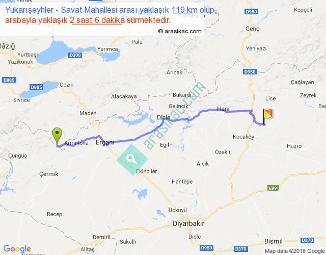 Yukarışeyhler - Savat Mahallesi arası yaklaşık olarak 90 km/h ile yukarıda belirtilen sürede olup, iki yerin kuş uçuşu uzaklığı (mesafesi) 98'dir. Yolculuk otobüsle 2 saat 43 dakika sürmektedir.