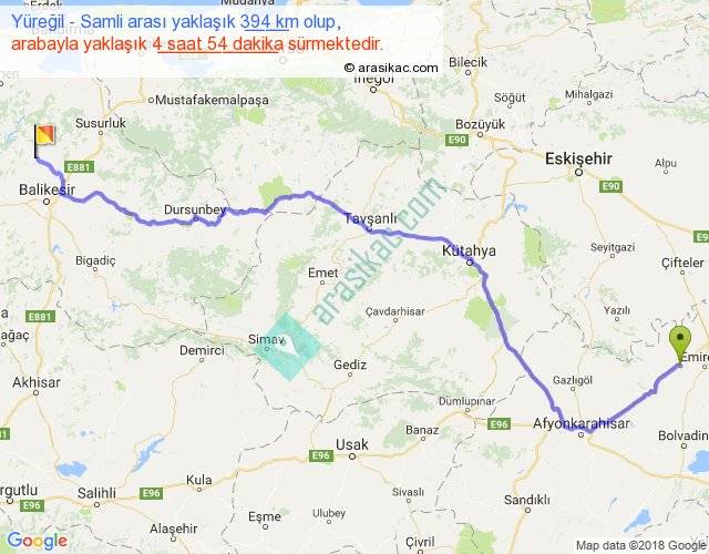 Eğer Yüreğil Samli arası ne kadar yakar (benzin/mazot) diyorsanız, kilometrede 3 ₺ yakan bir aracınız var ise 1182, km'de 4 ₺ yakan bir aracınız var ise 1576, km'de 5 ₺ yakan bir aracınız var ise 1970 ile bu yolculuğu tamamlayabilirsiniz.