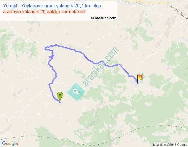 Yüreğil - Yaylabayır arası yaklaşık olarak 90 km/h ile yukarıda belirtilen sürede olup, iki yerin kuş uçuşu uzaklığı (mesafesi) 8'dir. Yolculuk otobüsle 33 dakika sürmektedir.