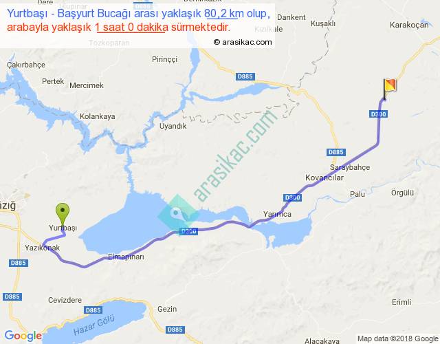 Yurtbaşı - Başyurt Bucağı arası yaklaşık olarak 90 km/h ile yukarıda belirtilen sürede olup, iki yerin kuş uçuşu uzaklığı (mesafesi) 60'dir. Yolculuk otobüsle 1 saat 18 dakika sürmektedir.