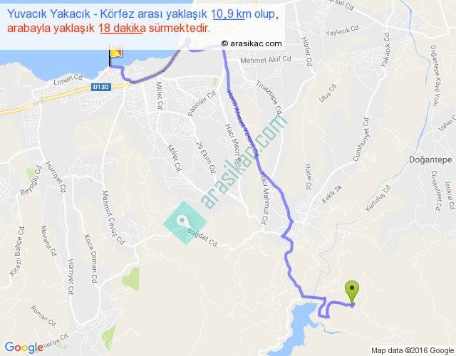 Yuvacık Yakacık - Körfez arası yaklaşık olarak 90 km/h ile yukarıda belirtilen sürede olup, iki yerin kuş uçuşu uzaklığı (mesafesi) 7'dir. Yolculuk otobüsle 23 dakika sürmektedir.