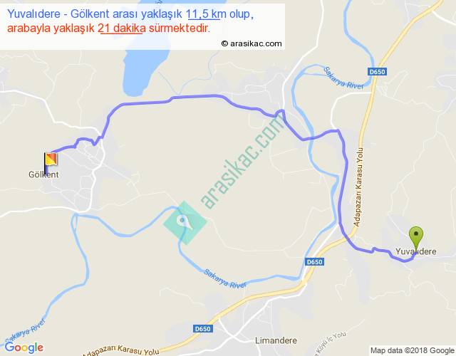 Yuvalıdere - Gölkent arası yaklaşık olarak 90 km/h ile yukarıda belirtilen sürede olup, iki yerin kuş uçuşu uzaklığı (mesafesi) 8'dir. Yolculuk otobüsle 27 dakika sürmektedir.