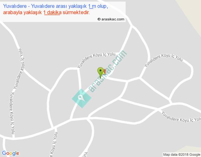 Yuvalıdere - Yuvalıdere arası yaklaşık olarak 90 km/h ile yukarıda belirtilen sürede olup, iki yerin kuş uçuşu uzaklığı (mesafesi) 0'dir. Yolculuk otobüsle 1 dakika sürmektedir.
