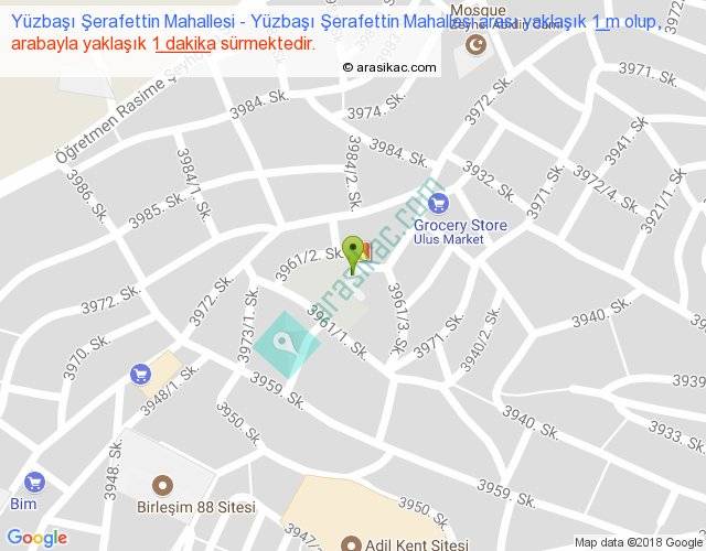 Yüzbaşı Şerafettin Mahallesi - Yüzbaşı Şerafettin Mahallesi arası yaklaşık olarak 90 km/h ile yukarıda belirtilen sürede olup, iki yerin kuş uçuşu uzaklığı (mesafesi) 0'dir. Yolculuk otobüsle 1 dakika sürmektedir.