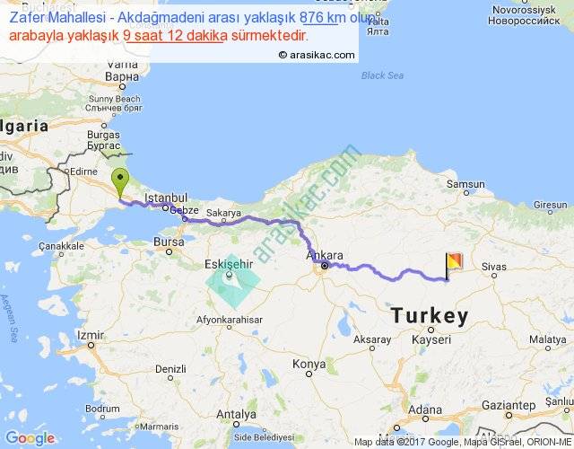 Zafer Mahallesi - Akdağmadeni arası yaklaşık olarak 90 km/h ile yukarıda belirtilen sürede olup, iki yerin kuş uçuşu uzaklığı (mesafesi) 695'dir. Eğer belirtilen yerler arasında uçak seferi var ise bu süre uçakla 1 saat 04 dakika'ya kadar düşebilir. Yolculuk otobüsle 11 saat 57 dakika sürmektedir.