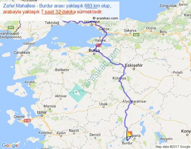 Eğer Zafer Mahallesi Burdur arası ne kadar yakar (benzin/mazot) diyorsanız, kilometrede 3 ₺ yakan bir aracınız var ise 2049, km'de 4 ₺ yakan bir aracınız var ise 2732, km'de 5 ₺ yakan bir aracınız var ise 3415 ile bu yolculuğu tamamlayabilirsiniz.