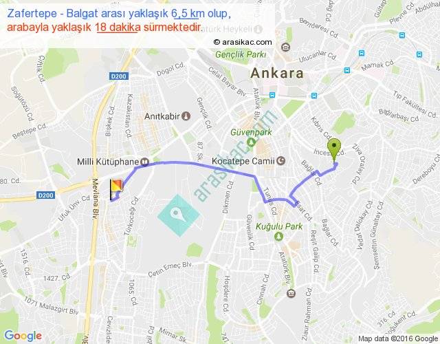 Zafertepe - Balgat arası yaklaşık olarak 90 km/h ile yukarıda belirtilen sürede olup, iki yerin kuş uçuşu uzaklığı (mesafesi) 5'dir. Yolculuk otobüsle 23 dakika sürmektedir.