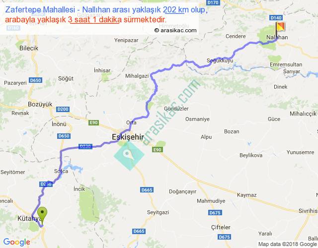 Zafertepe Mahallesi - Nallıhan arası yaklaşık olarak 90 km/h ile yukarıda belirtilen sürede olup, iki yerin kuş uçuşu uzaklığı (mesafesi) 141'dir. Yolculuk otobüsle 3 saat 55 dakika sürmektedir.