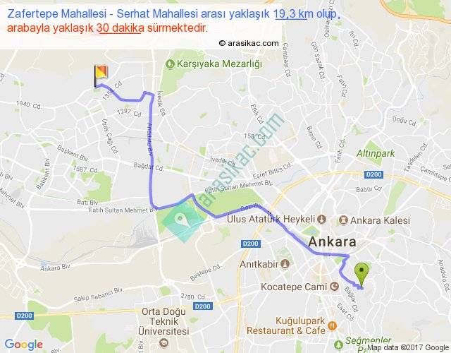 Zafertepe Mahallesi - Serhat Mahallesi arası yaklaşık olarak 90 km/h ile yukarıda belirtilen sürede olup, iki yerin kuş uçuşu uzaklığı (mesafesi) 14'dir. Yolculuk otobüsle 39 dakika sürmektedir.