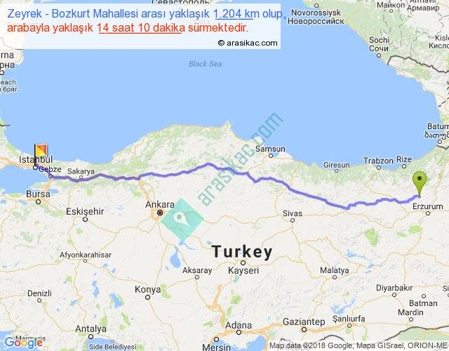 Zeyrek - Bozkurt Mahallesi arası yaklaşık olarak 90 km/h ile yukarıda belirtilen sürede olup, iki yerin kuş uçuşu uzaklığı (mesafesi) 1009'dir. Eğer belirtilen yerler arasında uçak seferi var ise bu süre uçakla 1 saat 33 dakika'ya kadar düşebilir. Yolculuk otobüsle 18 saat 25 dakika sürmektedir.