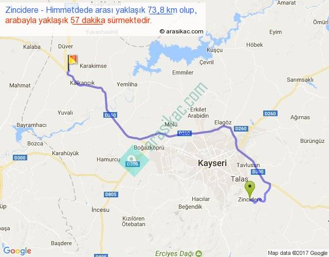 Zincidere - Himmetdede arası yaklaşık olarak 90 km/h ile yukarıda belirtilen sürede olup, iki yerin kuş uçuşu uzaklığı (mesafesi) 51'dir. Yolculuk otobüsle 1 saat 14 dakika sürmektedir.