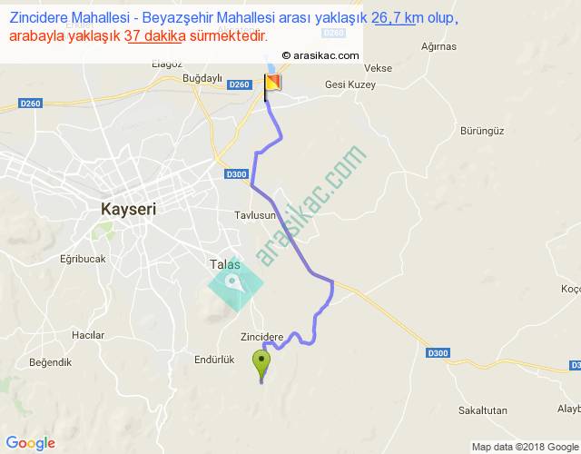 Zincidere Mahallesi - Beyazşehir Mahallesi arası yaklaşık olarak 90 km/h ile yukarıda belirtilen sürede olup, iki yerin kuş uçuşu uzaklığı (mesafesi) 18'dir. Yolculuk otobüsle 48 dakika sürmektedir.