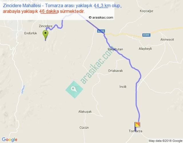 Zincidere Mahallesi - Tomarza arası yaklaşık olarak 90 km/h ile yukarıda belirtilen sürede olup, iki yerin kuş uçuşu uzaklığı (mesafesi) 26'dir. Yolculuk otobüsle 59 dakika sürmektedir.