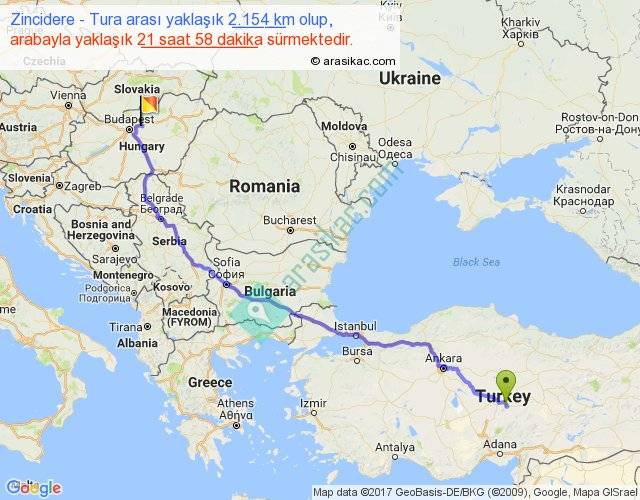 Zincidere - Tura arası yaklaşık olarak 90 km/h ile yukarıda belirtilen sürede olup, iki yerin kuş uçuşu uzaklığı (mesafesi) 1621'dir. Eğer belirtilen yerler arasında uçak seferi var ise bu süre uçakla 2 saat 29 dakika'ya kadar düşebilir. Yolculuk otobüsle 1 gün 4 saat sürmektedir.