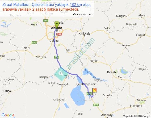 Ziraat Mahallesi - Çalören arası yaklaşık olarak 90 km/h ile yukarıda belirtilen sürede olup, iki yerin kuş uçuşu uzaklığı (mesafesi) 149'dir. Yolculuk otobüsle 2 saat 42 dakika sürmektedir.