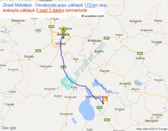 Ziraat Mahallesi - Devekovan arası yaklaşık olarak 90 km/h ile yukarıda belirtilen sürede olup, iki yerin kuş uçuşu uzaklığı (mesafesi) 141'dir. Yolculuk otobüsle 2 saat 39 dakika sürmektedir.