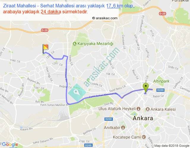 Ziraat Mahallesi - Serhat Mahallesi arası yaklaşık olarak 90 km/h ile yukarıda belirtilen sürede olup, iki yerin kuş uçuşu uzaklığı (mesafesi) 11'dir. Yolculuk otobüsle 31 dakika sürmektedir.