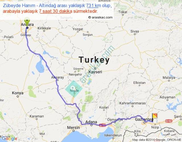 Zübeyde Hanım - Altındağ arası yaklaşık olarak 90 km/h ile yukarıda belirtilen sürede olup, iki yerin kuş uçuşu uzaklığı (mesafesi) 526'dir. Eğer belirtilen yerler arasında uçak seferi var ise bu süre uçakla 48 dakika'ya kadar düşebilir. Yolculuk otobüsle 9 saat 45 dakika sürmektedir.