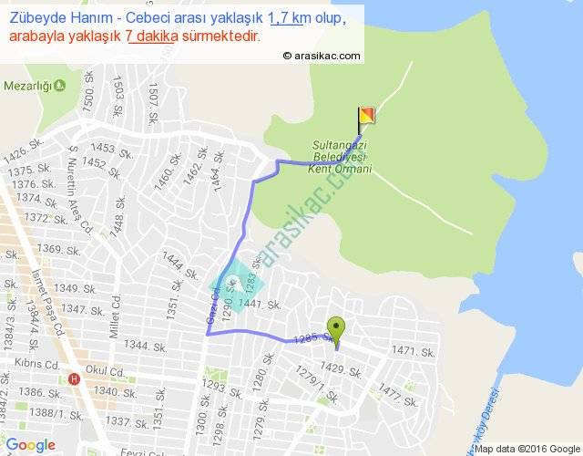Zübeyde Hanım - Cebeci arası yaklaşık olarak 90 km/h ile yukarıda belirtilen sürede olup, iki yerin kuş uçuşu uzaklığı (mesafesi) 1'dir. Yolculuk otobüsle 9 dakika sürmektedir.