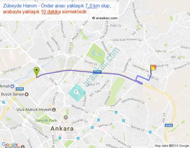 Zübeyde Hanım - Önder arası yaklaşık olarak 90 km/h ile yukarıda belirtilen sürede olup, iki yerin kuş uçuşu uzaklığı (mesafesi) 6'dir. Yolculuk otobüsle 13 dakika sürmektedir.
