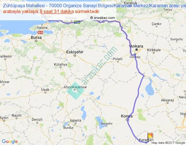 Zühtüpaşa Mahallesi - 70000 Organize Sanayi Bölgesi Karaman Merkez Karaman arası detaylı bilgi