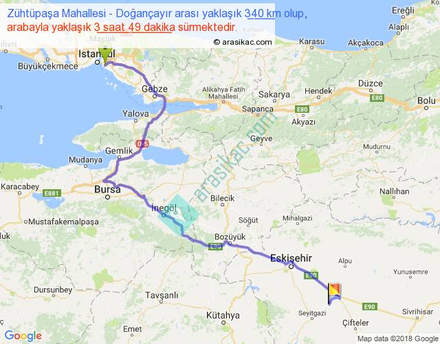 Zühtüpaşa Mahallesi - Doğançayır arası yaklaşık olarak 90 km/h ile yukarıda belirtilen sürede olup, iki yerin kuş uçuşu uzaklığı (mesafesi) 221'dir. Yolculuk otobüsle 4 saat 57 dakika sürmektedir.
